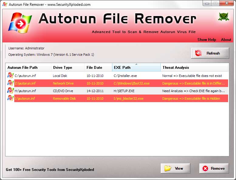 Autorun File Remover - Free Autorun Virus File Removal Tool | www.SecurityXploded.com