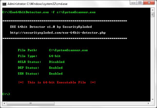EXE 64bit Detector is very easy to use tool. Since it is command-line/console based tool, you have to launch it from the command prompt (cmd.exe).
