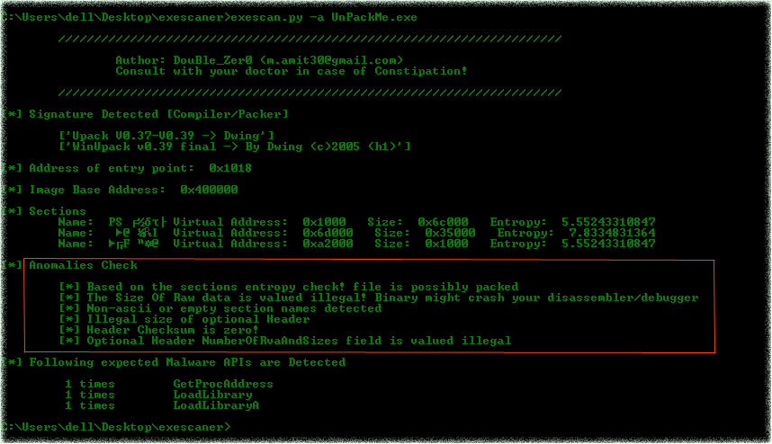 | Display the type of file (EXE/DLL). Listing of export table. Store the reports in more organized way with MD5 hash name for that folder. |
