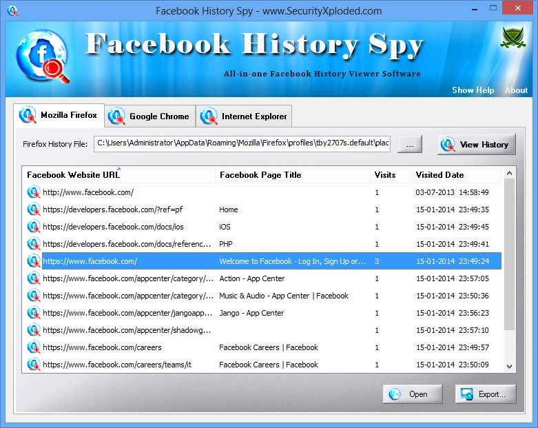 | Mega 2017 edition supporting Facebook history display on Windows 10. Also inlcudes enhancements like Automatic sort by date, improved Firefox profile detection & new Windows Installer. |