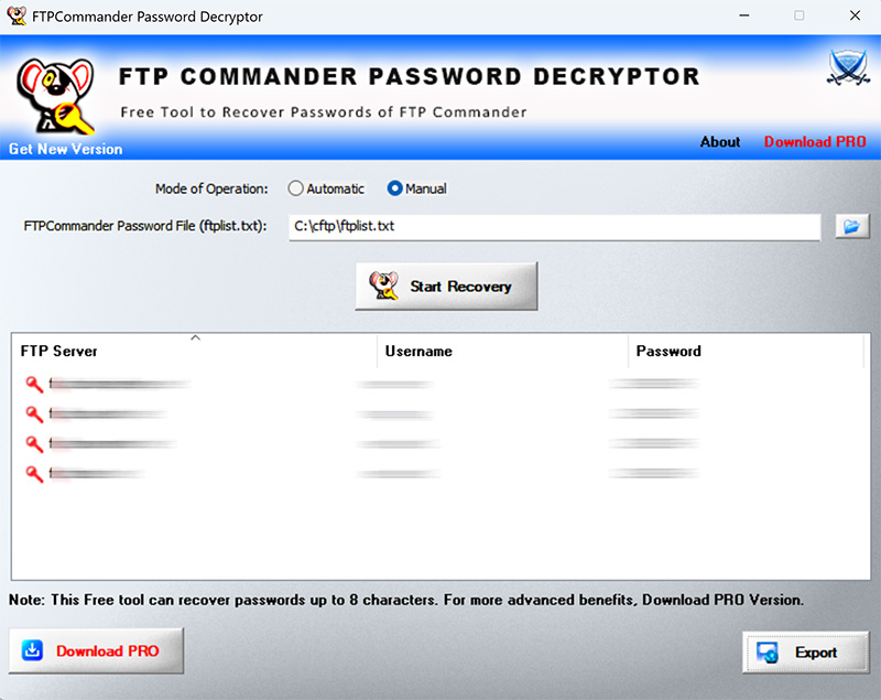| Major 2019 release to recover login passwords from latest FTP Commander application. Also enhanced GUI and password report in HTML file |