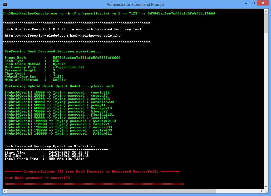 Hash Kracker Console is successfully tested on Windows XP to Windows 8.
