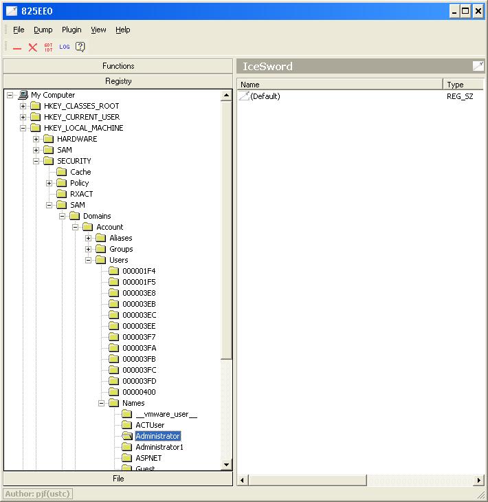 ICESword's Registry Editor showing SAM entry