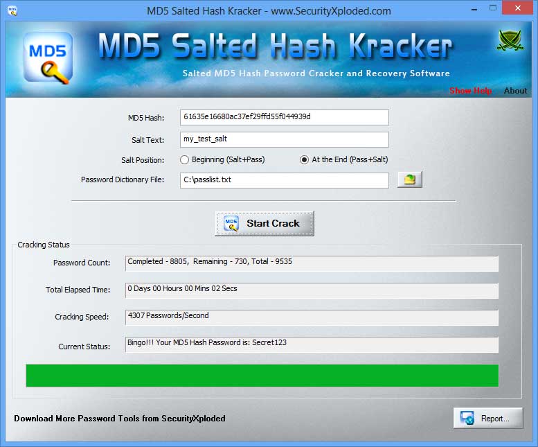 MD5 Salted Hash Kracker : Free Salted MD5 Hash Password Cracker and Recovery Software