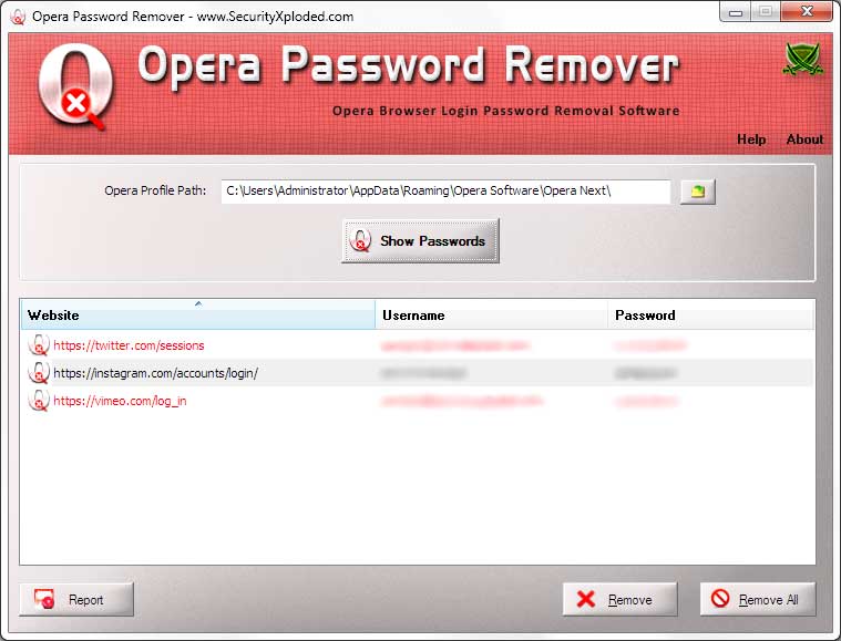 | Opera Password Remover is easy to use tool with cool GUI interface.
