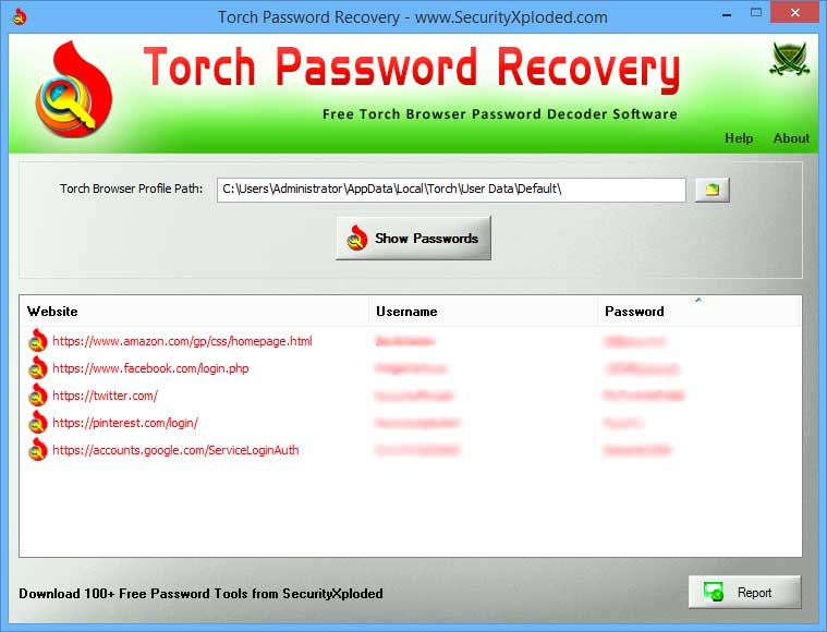 - Instantly decrypt and recover stored passswords from Torch Browser