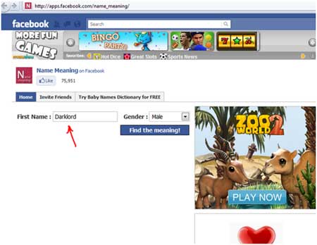 interesting Facebook application which tells you the meaning of your name.